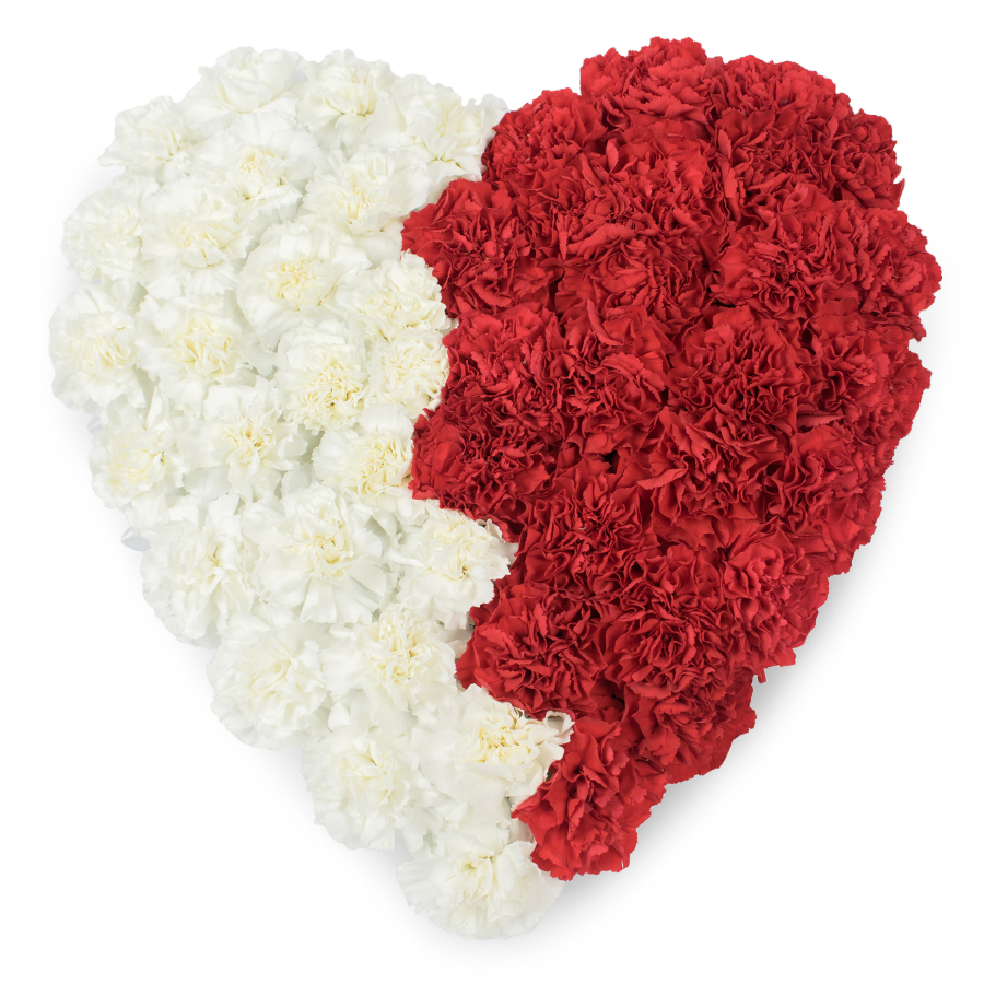 Embrace the elegance and charm of our heart-shaped bouquet, featuring a delightful mix of white and red carnations. Each flower is carefully hand-selected to ensure top-notch freshness and vibrant beauty.